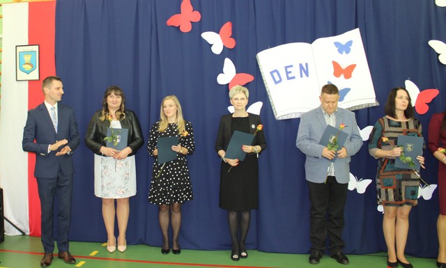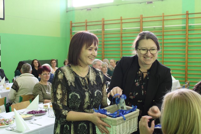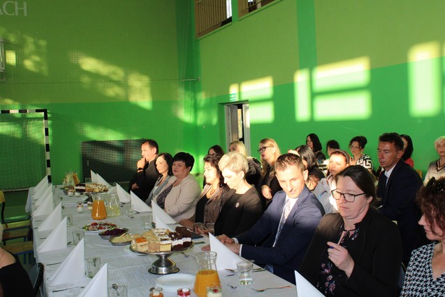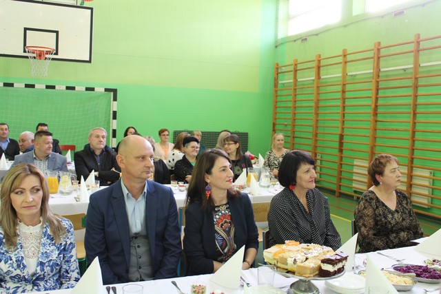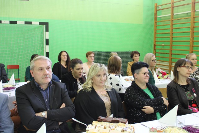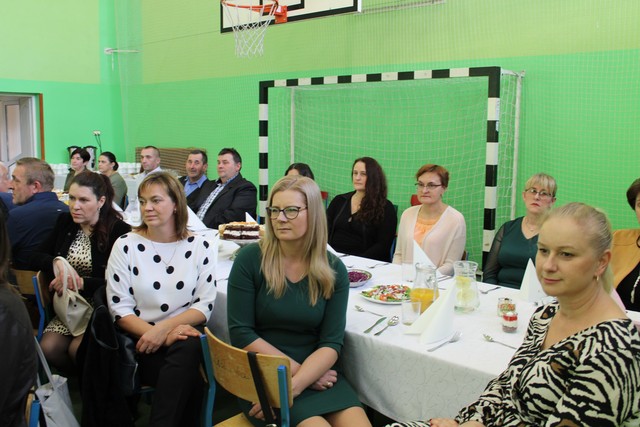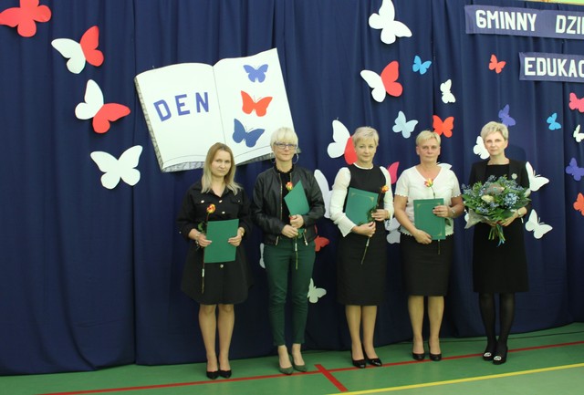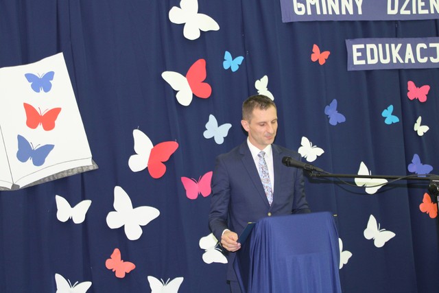 Wójt Gminy - Krzysztof Woźniak złożył nauczycielom i wszystkim pracownikom szkół serdeczne życzenia i podziękowania. W swoim wystąpieniu powiedział miedzy innymi: „Święto pracowników oświaty jest tym momentem, w którym przypominamy o szczególnej roli szkoły, nauczycieli oraz wszystkich pracowników oświaty w przygotowaniu do życia naszych dzieci. Z tej okazji składamy najlepsze życzenia nauczycielom, pedagogom i pracownikom oświaty, którzy na co dzień dbali i dbają o wychowanie młodego pokolenia Polaków…Pragnę też podziękować tym z Państwa, którzy dzięki swojej wiedzy i doświadczeniu pomagają dzieciom i młodzieży w pokonywaniu trudności, przełamywaniu barier. Dziękuję za budowanie postaw patriotycznych i umiejętności uczestnictwa w życiu społeczeństwa oraz wspieraniu potrzebujących. Wszystkim pracownikom niepedagogicznym dziękuję za codzienny wysiłek aby nasze dzieci miały jak najlepsze warunki do kształcenia.”