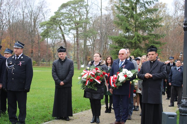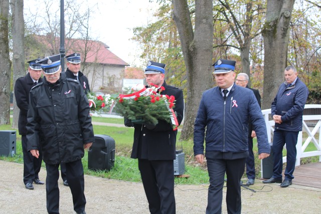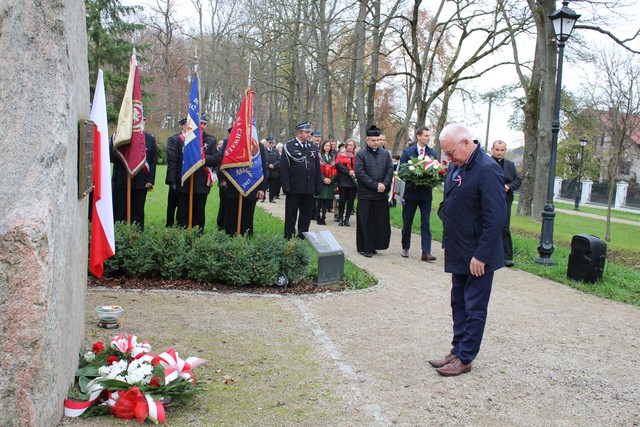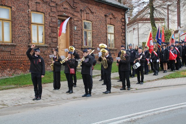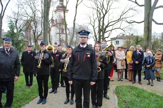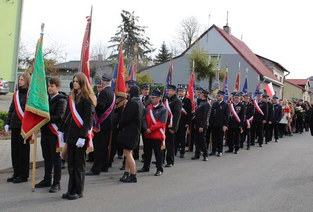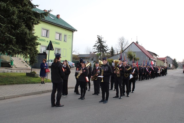 Przybyłe delegacje przy akompaniamencie Orkiestry OSP Zadzim złożyły wiązanki kwiatów w hołdzie poległym w obronie Ojczyzny.