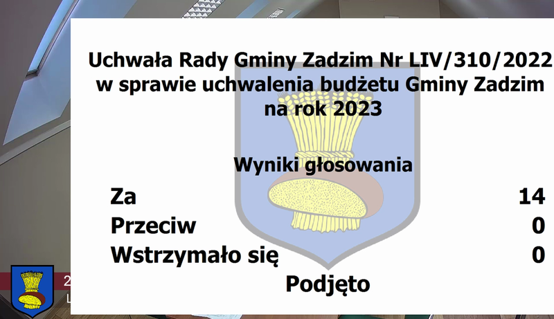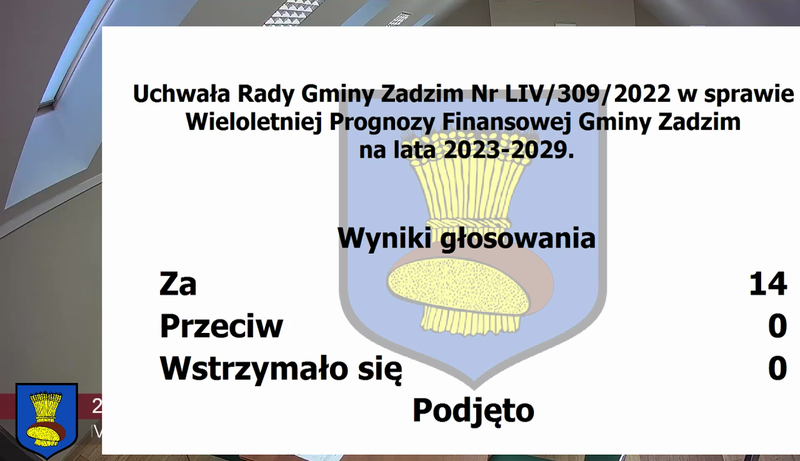 W czwartek, 29 grudnia, odbyła się ostatnia w 2022 roku, LIV sesja Rady Gminy w Zadzimiu. Głównym tematem posiedzenia, oprócz ostatnich zmian w bieżącym budżecie, było uchwalenie budżetu Gminy Zadzim na rok 2023 oraz Wieloletniej Prognozy Finansowej na lata 2023-2029. Po raz pierwszy w historii plan finansowy naszego samorządu wynosi 45 703 203,58 zł, w tym na wydatki inwestycyjne zaplanowane jest rekordowe 22 698 693,18 zł. Wśród zadań do realizacji przewidziane są między innymi przebudowy dróg, termomodernizacje budynków użyteczności publicznej, budowa kanalizacji, modernizacja stacji uzdatniania wody, inwestycje w odnawialne źródła energii czy utworzenie miejsc rekreacji dla dzieci.
