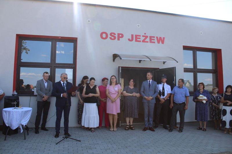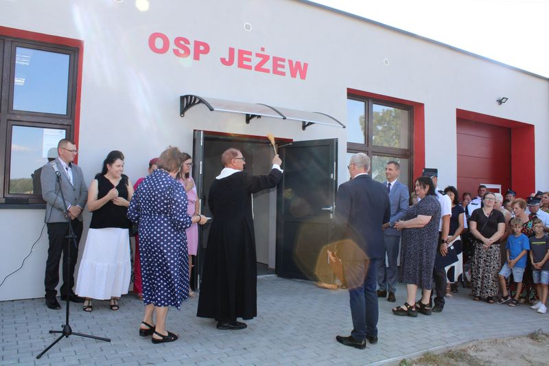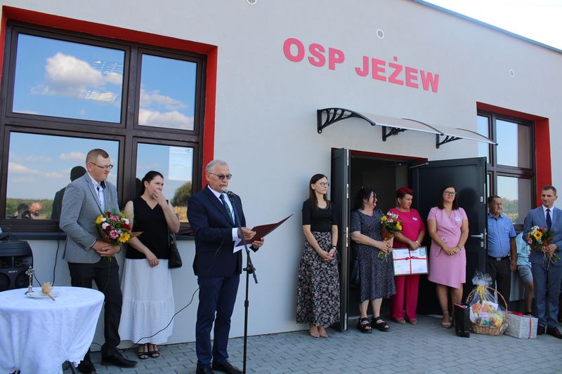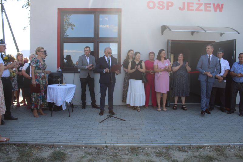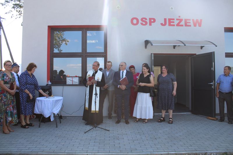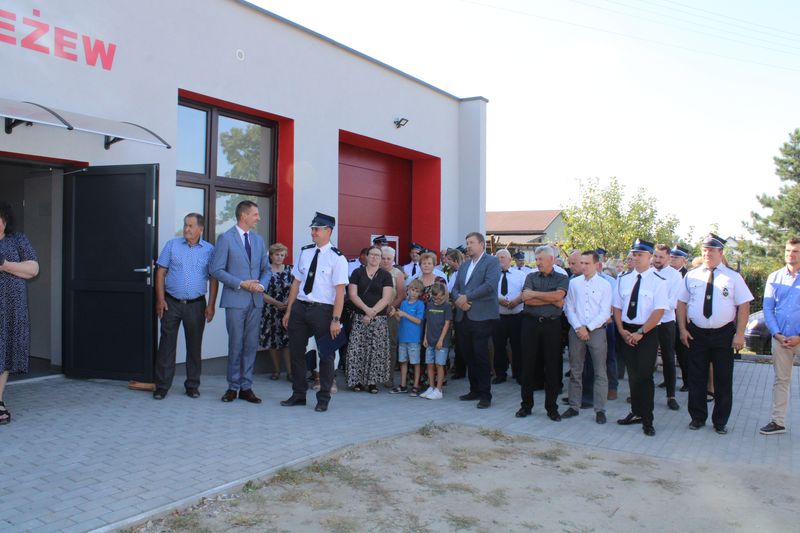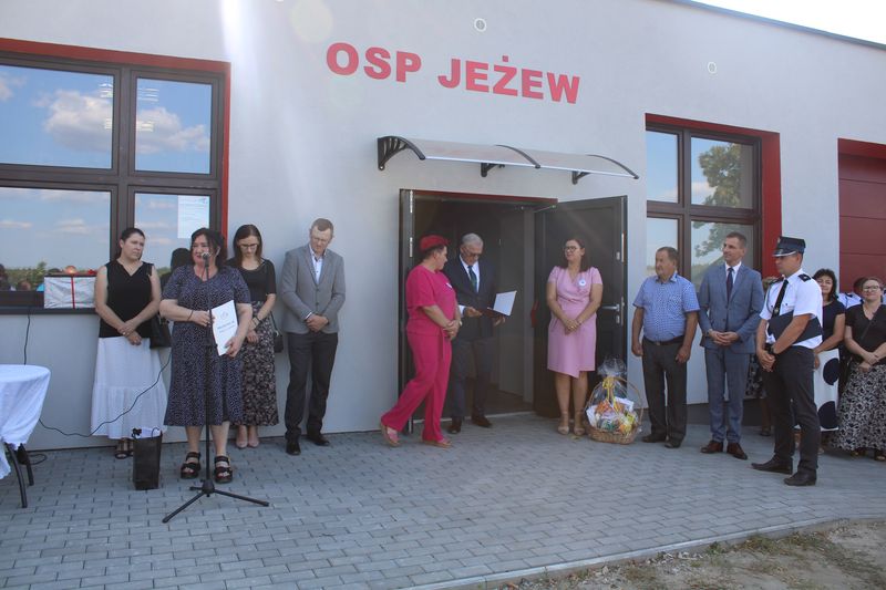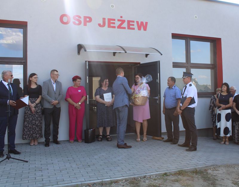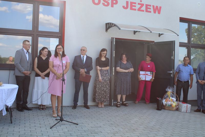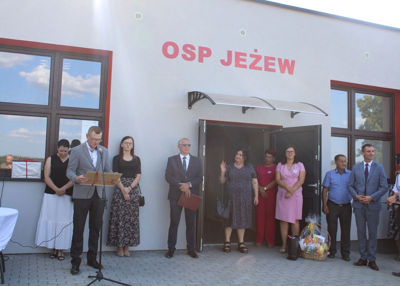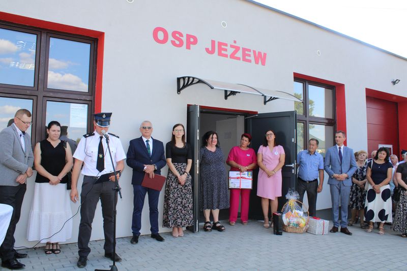 W sobotnie popołudnie – 7 września br. w miejscowości Jeżew odbyła się uroczystość oddania do użytku wyremontowanej remizy Ochotniczej Straży Pożarnej, która śmiało można stwierdzić przeszła całkowitą metamorfozę. Inwestycja zrealizowana została przez samorząd Gminy Zadzim w ramach trzeciego naboru Rządowego Programu Inwestycji Strategicznych POLSKI ŁAD – PGR. Dzięki pozyskanym środkom przebudowa budynku strażnicy OSP objęła m.in. docieplenie ścian i stropów, wymianę stolarki okiennej i drzwiowej, modernizację dachu, remont wnętrz wraz z wymianą instalacji elektrycznej oraz wykonanie nowego źródła ciepła. W ramach zadania wybudowano nową instalację sanitarną, powstał plac zabaw dla dzieci, cały obiekt zyskał nowe ogrodzenie.